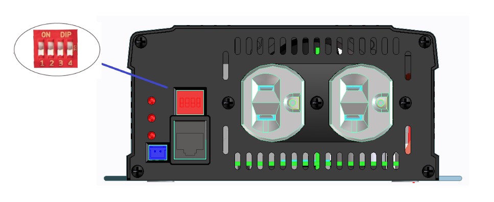透过指拨开关设定输出电压、频率与省电模式,指拨开关设定选择请参阅表1,省电模式于极轻负载状态下关闭输出电源,以减低电池损耗,如医疗相关等紧急电源应用,建议采用非省电模式,以确保系统可持续工作。出厂设定为110Vac/60Hz或230Vac/50Hz,以及非省电模式。